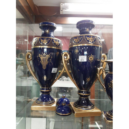 PAIRE VASES BLEU (ACCIDENTE COUVERCLE)